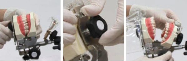 - Một vít nằm trong đế đầu được sử dụng để cố định các mô hình hàm trên và hàm dưới