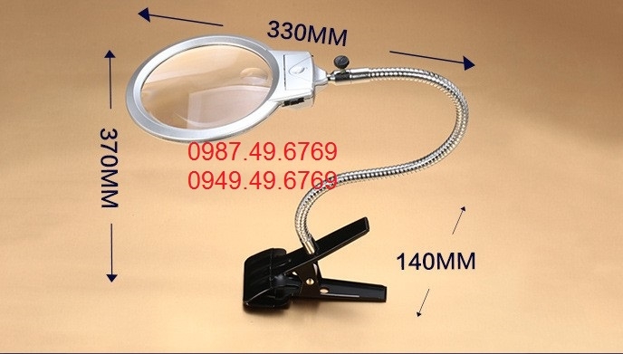 Kính lúp kẹp bàn đèn LED 2.5X và 5X: Kính lúp có đèn, thuận tiện khi sử dụng. - Dùng trong gia đình: học tập, xem sách báo, đọc toa thuốc, xem tem, soi trang sức, soi gốm sứ, soi đồng hồ .... phù hợp mọi lứa tuổi - Sử dụng với bóng đèn LED trắng cho độ sáng tối đa - Độ phóng đại : 2.5X và 5X