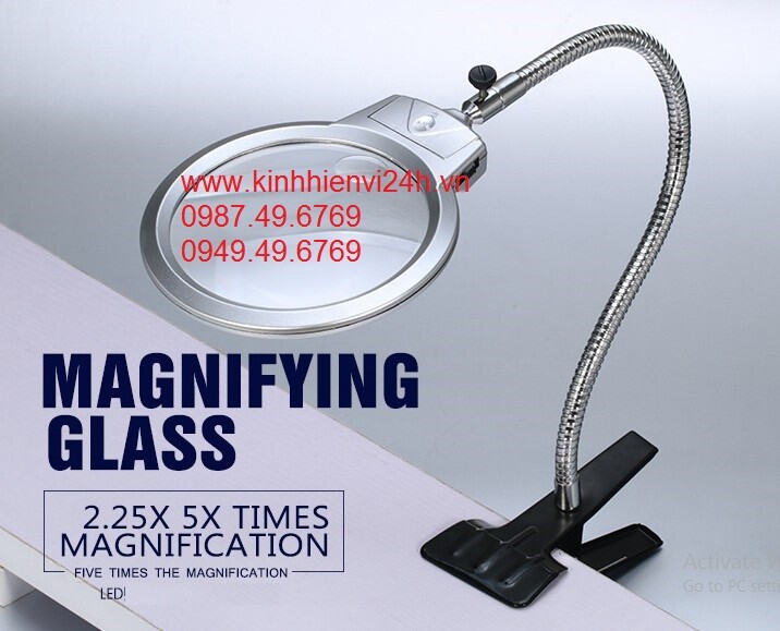 Kính lúp kẹp bàn đèn LED 2.5X và 5X